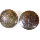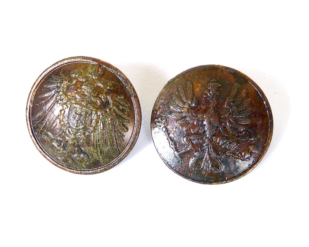 2 Kaiserliche Uniformknöpfe, Zustand mit stärkeren Lagerspuren.