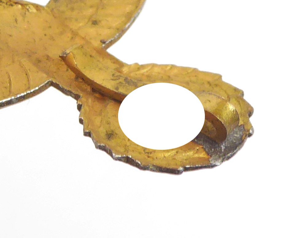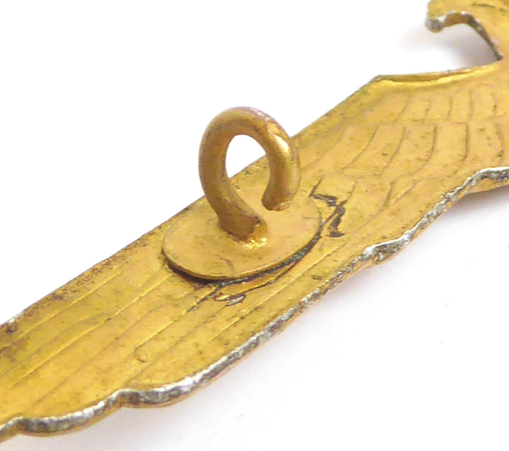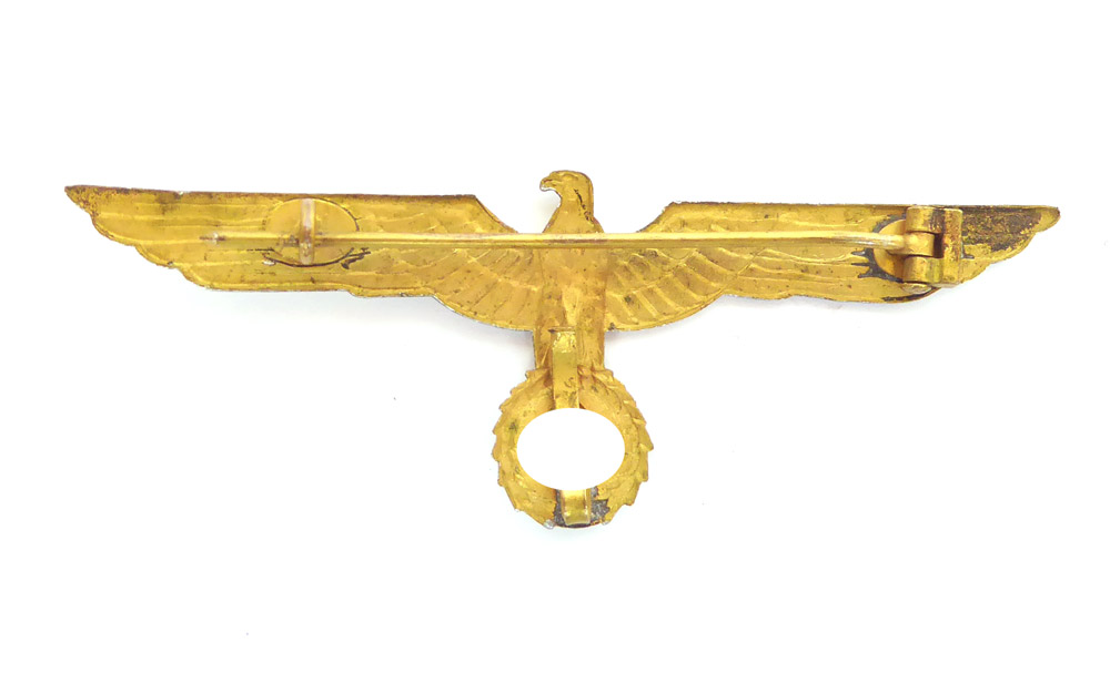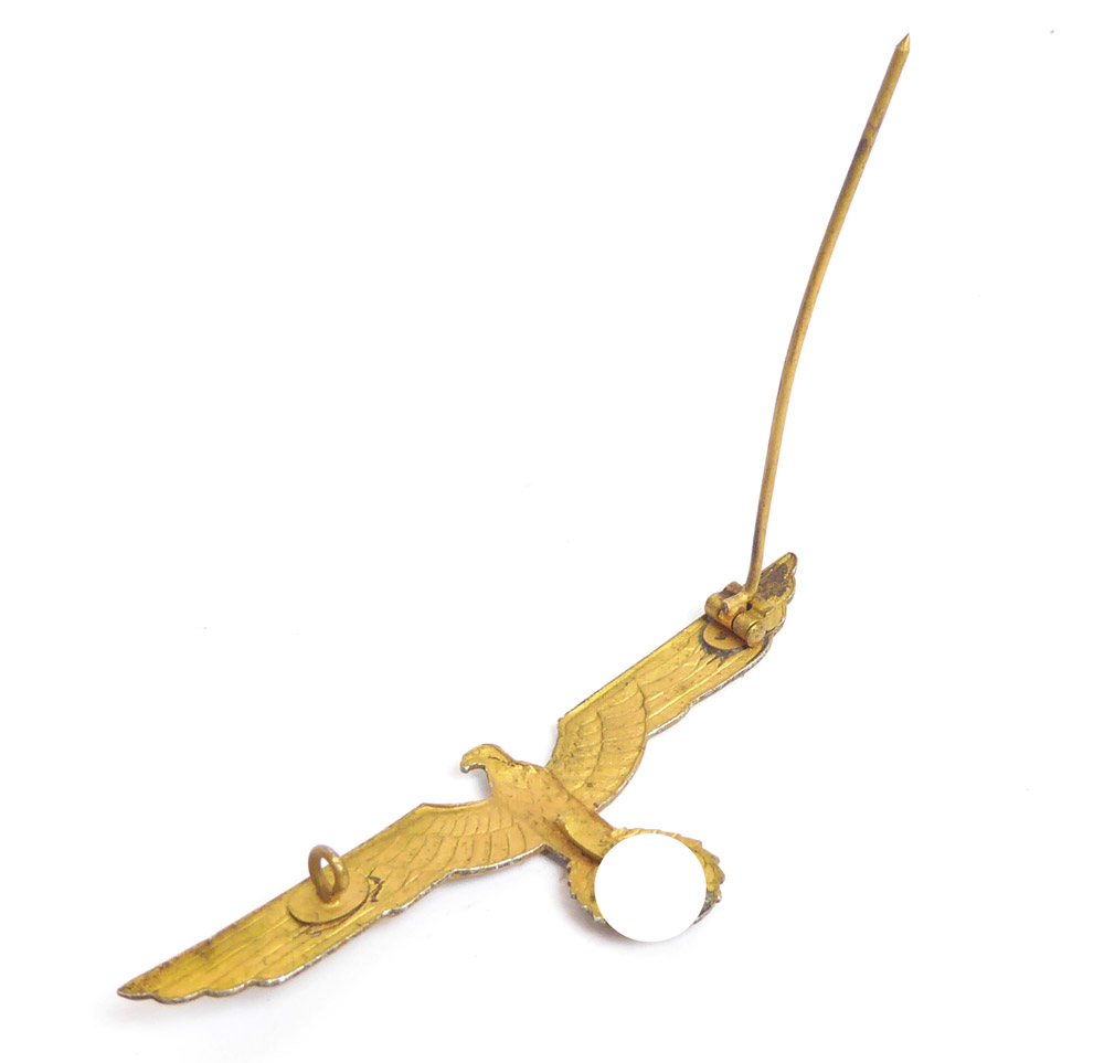 Breast eagle for a white summer blouse, eagle made of Cupal gold-plated in very nice quality, the pin system completely intact.