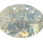 Coded Luftwaffe dog tag on a zinc blank, reasonable condition as shown, wearer number is 57, and code 214840 stands for “4.F.B.K./K.G. 100”. Was unfortunately broken, but was glued back together.