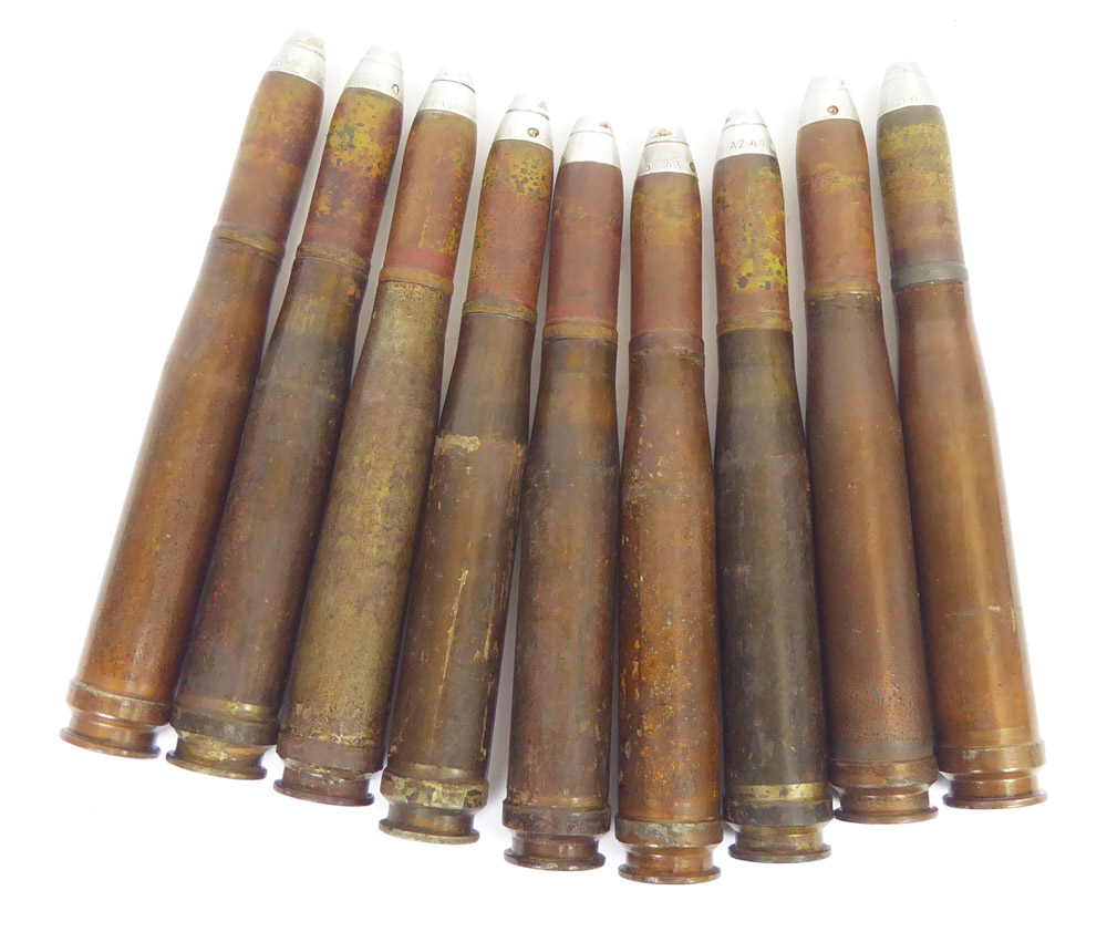 Deco 2cm anti-aircraft cartridge of the Wehrmacht. Stampings may vary slightly. Free of any contamination, for decorative use only. Price is for one piece!