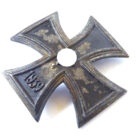 Eisernes Kreuz 1 Klasse als Schinkelstück in leicht getragenem Zustand mit einer herrlich dunklen Patina. Es handelt sich hierbei um eine Einteilige Fertigung aus versilbertem Neusilber von Schickle, die Kern Farbe zum Teil wie üblich bei den einteiligen Stücken abgeplatzt.