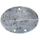 Erkennungsmarke vom Luft Nachrichten Regiment RADOM, der berühmten Polnischen Stadt wo das Wz24 Bajonett Radom gefertigt wurde. Sehr seltene Marke .