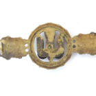 Front flight clasp for fighter pilots in silver, made of heavy brass, the silver plating is still very nicely preserved. In good, slightly used condition, there is wonderfull patina.