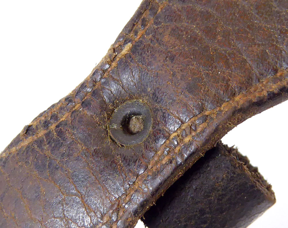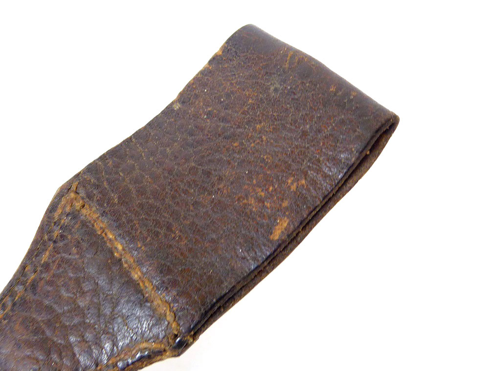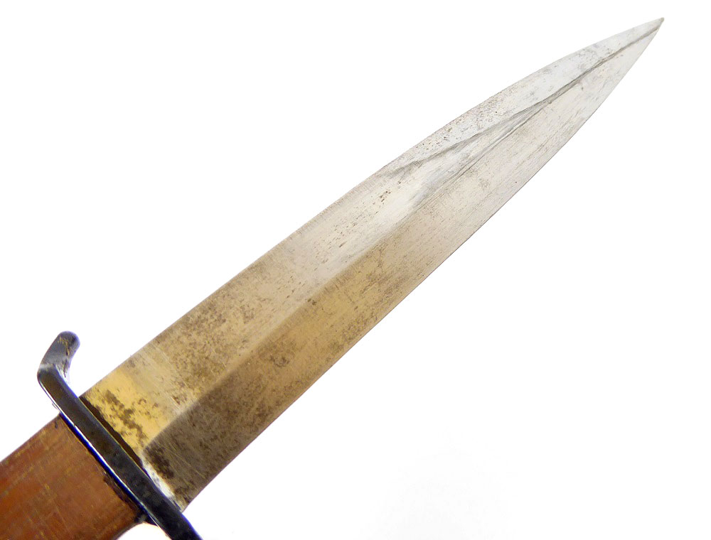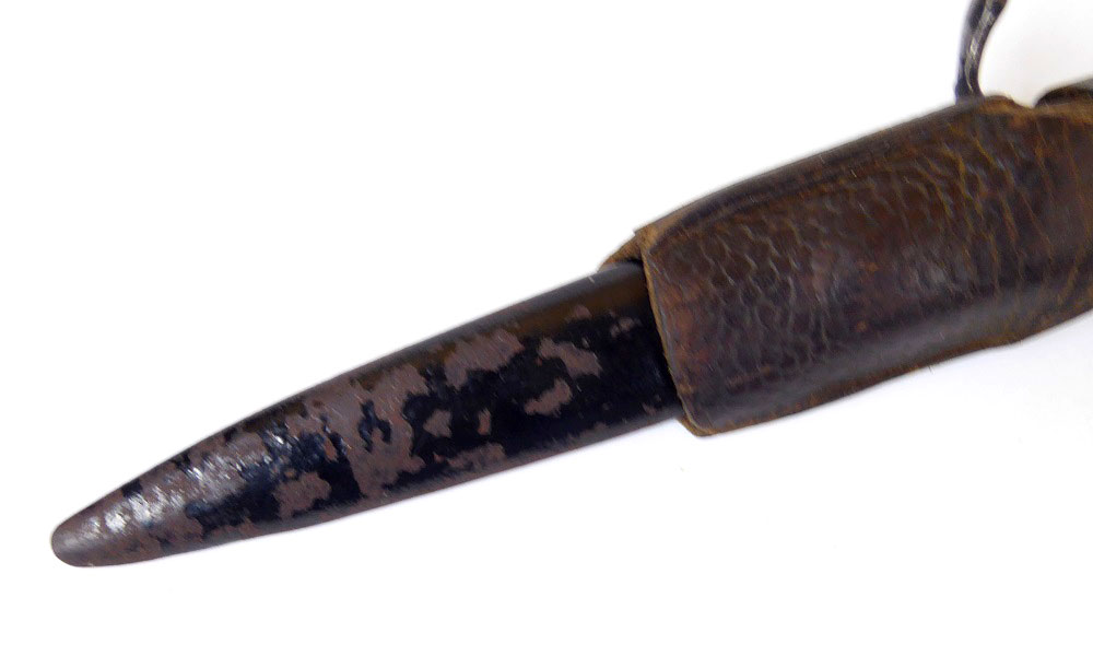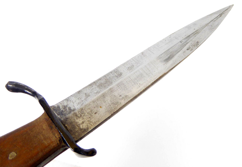 Imperial Trench Knife in good overall condition, scabbard with a lot of original paint. Interesting here is the padded shoe made at the front which was firmly riveted to the leather part of the scabbard. Unfortunately, the crossguard was painted black.