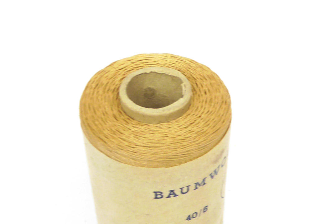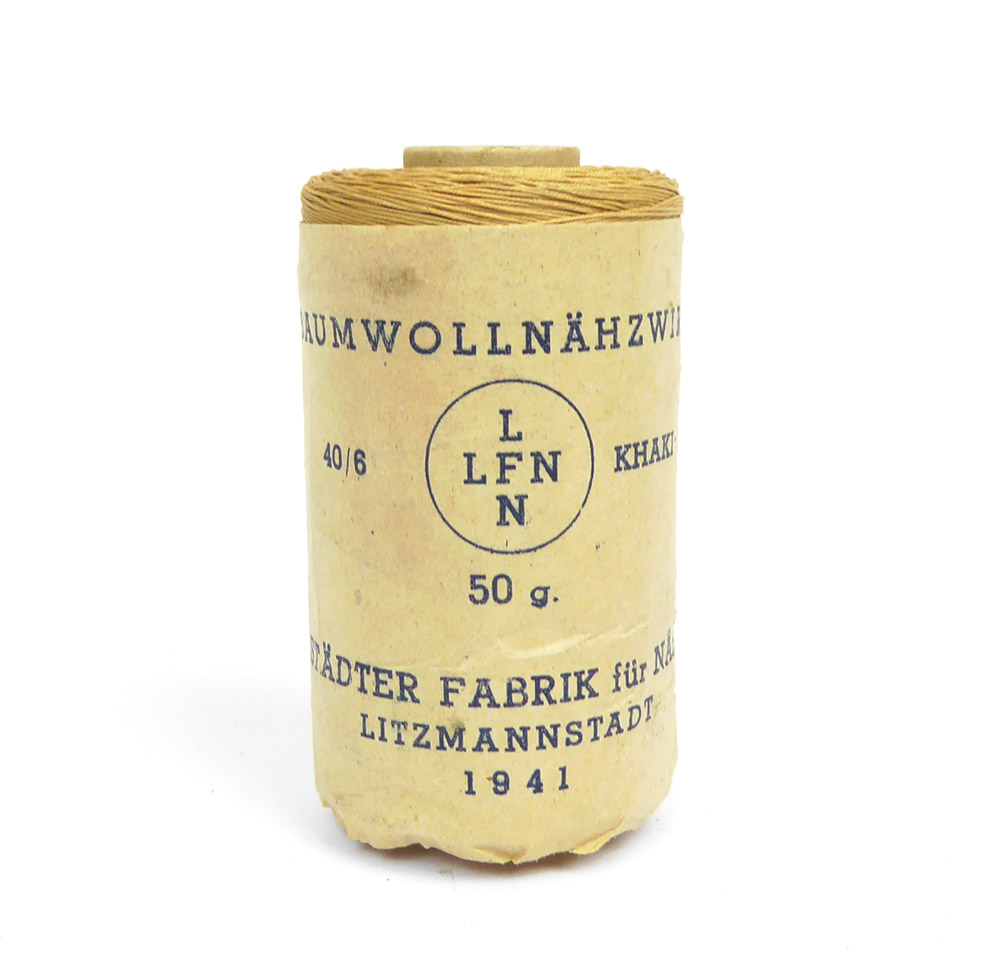 Khaki-Sandfarben thread spool from 1942, manufactured in Litzmannstadt, beautiful unused condition, as pictured.