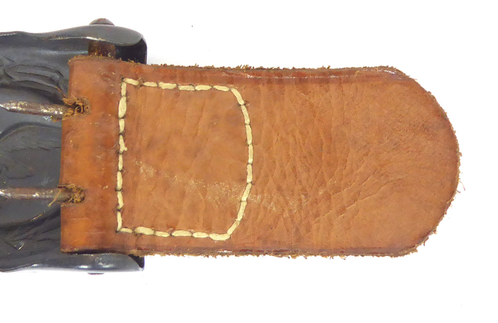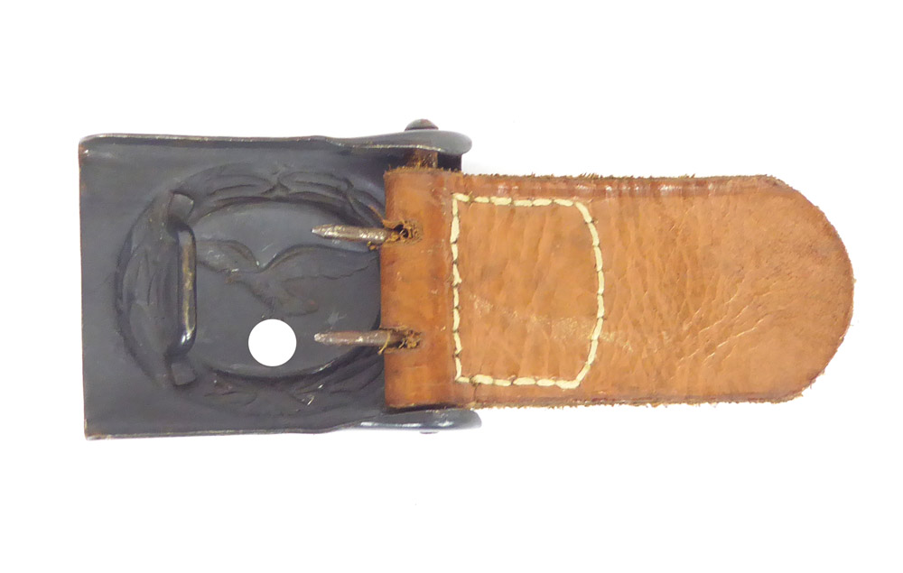 Luftwaffe belt buckle by Hermann Aurich Dresden from 1942, belt buckle on leather tab in almost unworn condition with only minimal rust, hardly available in this condition anymore.