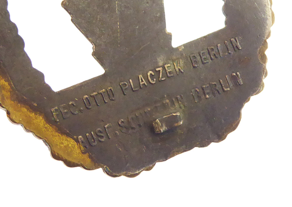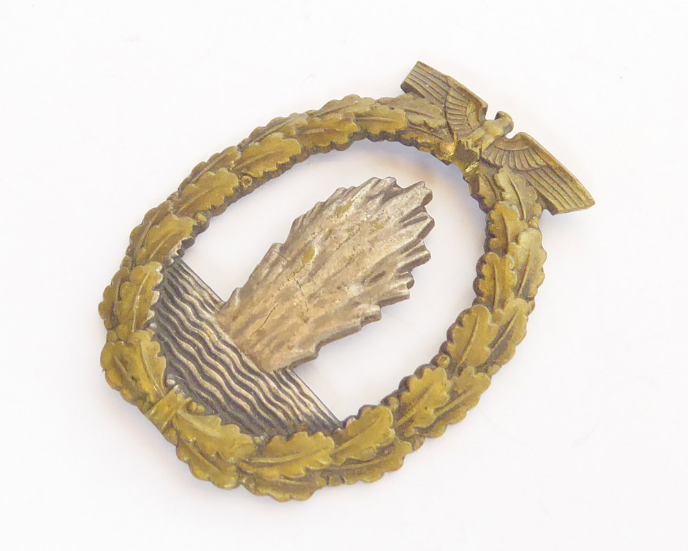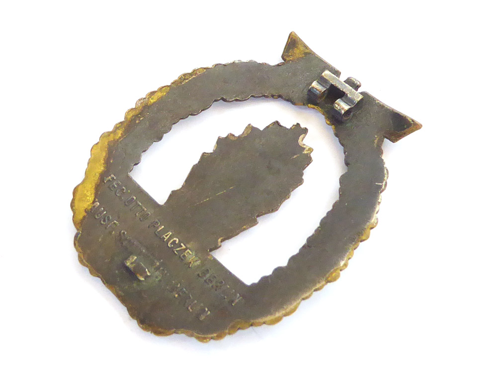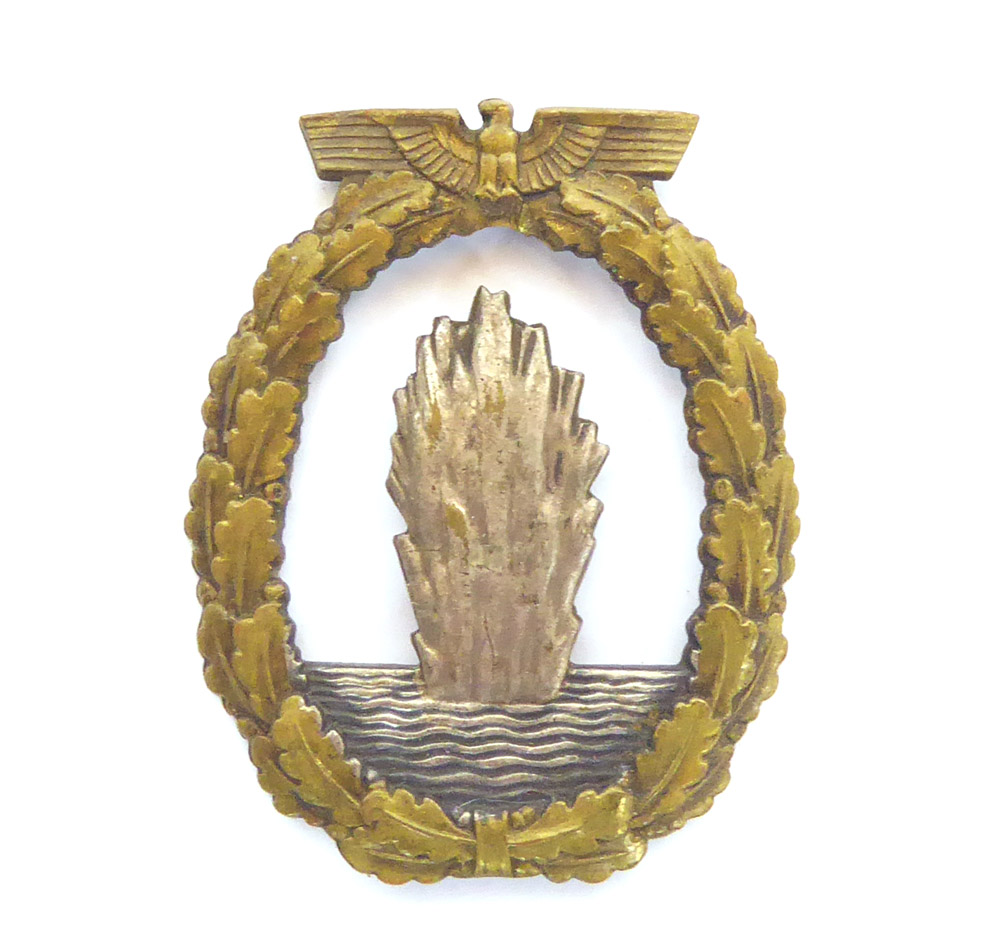 Minesweeper badge made of tombak by Schwerin Berlin. The needle system is unfortunately damaged and the swastika has been sanded off.