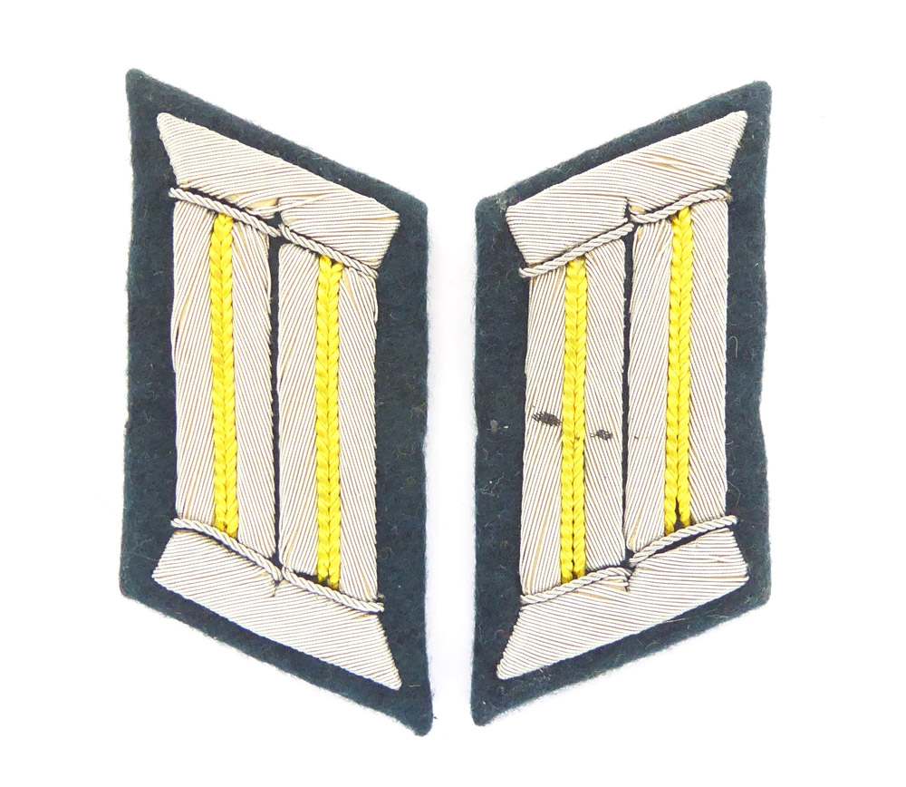 Pair of collar tabs for an officer in the branch color lemon yellow for the signals units, very nice condition, as pictured.