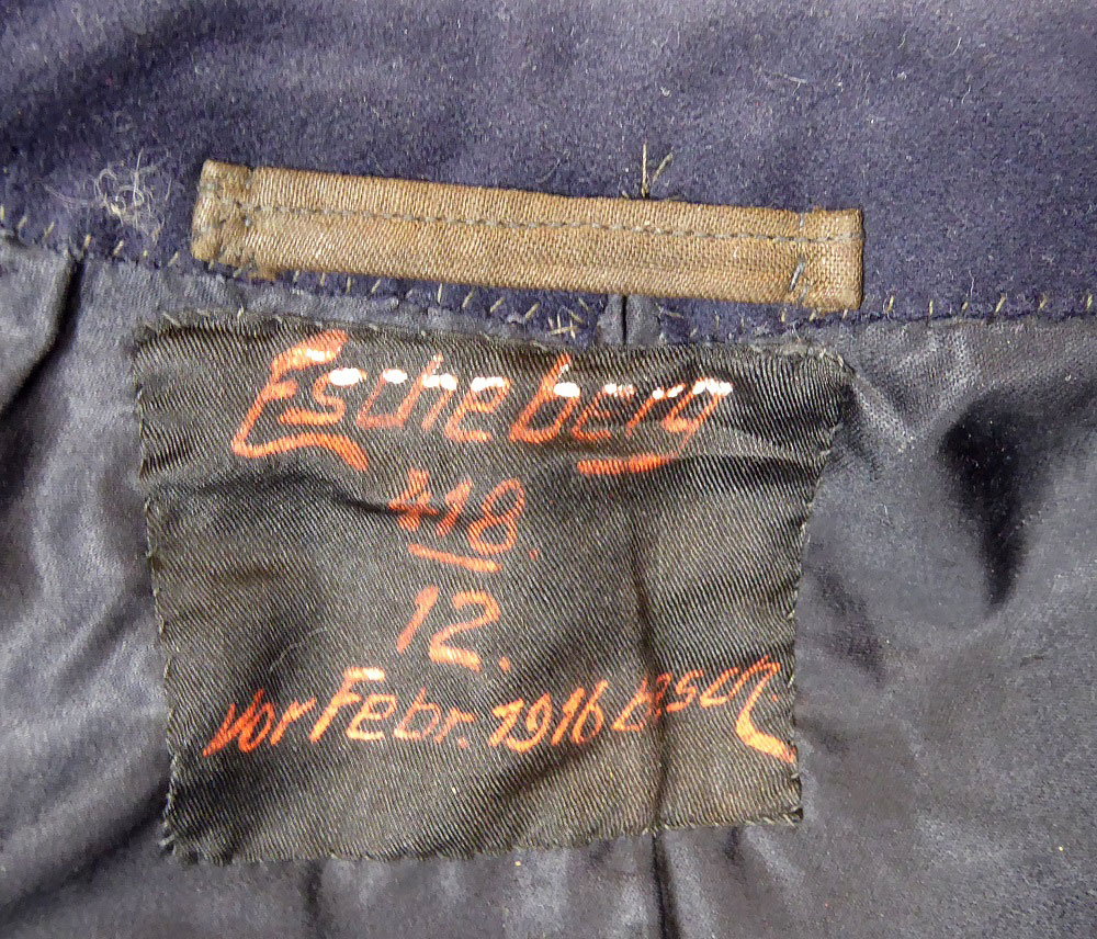 Parade jacket of the Imperial German Navy, so-called monkey jacket. Slightly worn piece in good condition, small moth holes and roughenes available, seal chain is unfortunately missing. The carrier entered the Navy in 1912 and has the master roll number 418.