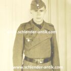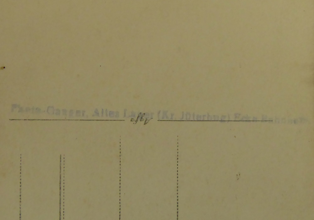 Portrait photo in postcard format of a member of the assault gun detachments, i.e. the field gray dressed tank crews, here with studio stamp of a photographer from Altes Lager (Jüterbog) where a lot of assault gun training took place.