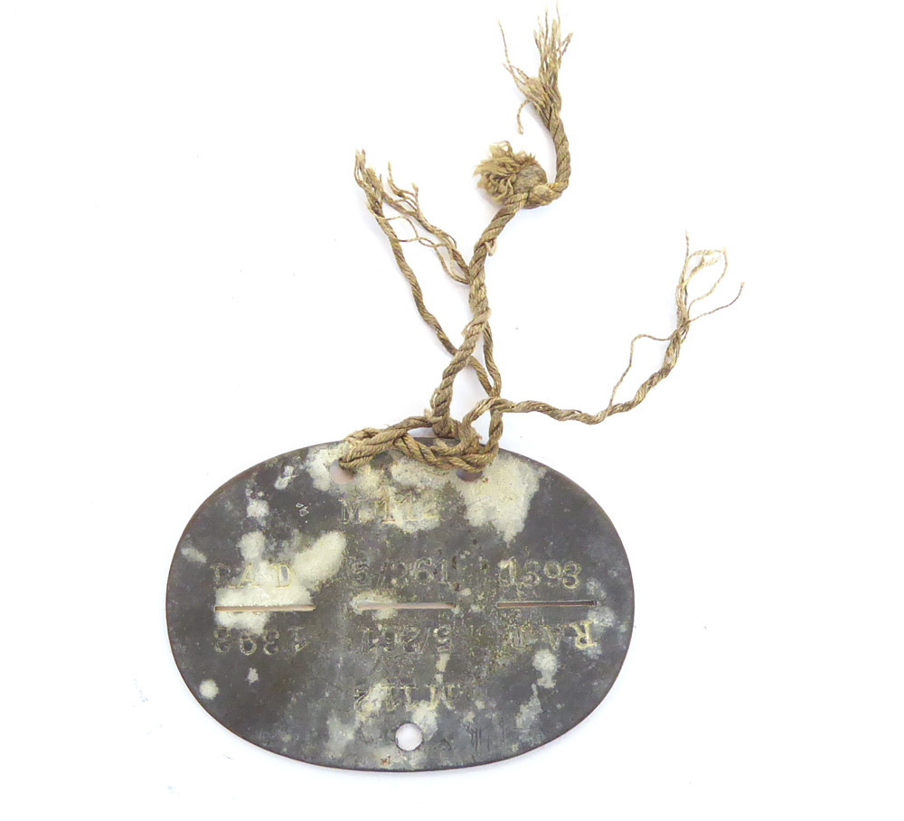 RAD dog tag in very good condition with remnants of the original carrying strap.