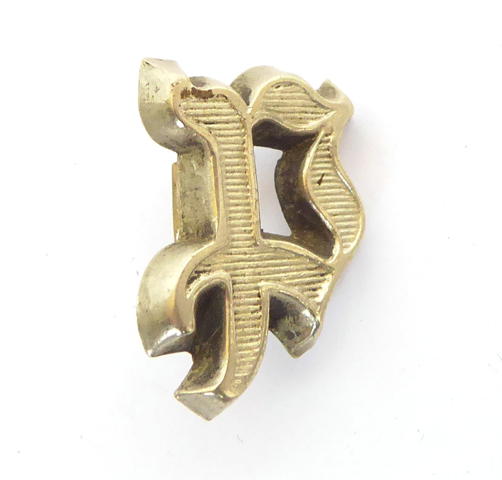 Shoulder strap cypher for a non-commissioned officer of the Panzerjäger, P, made of silver-plated tombak, both pins intact.
