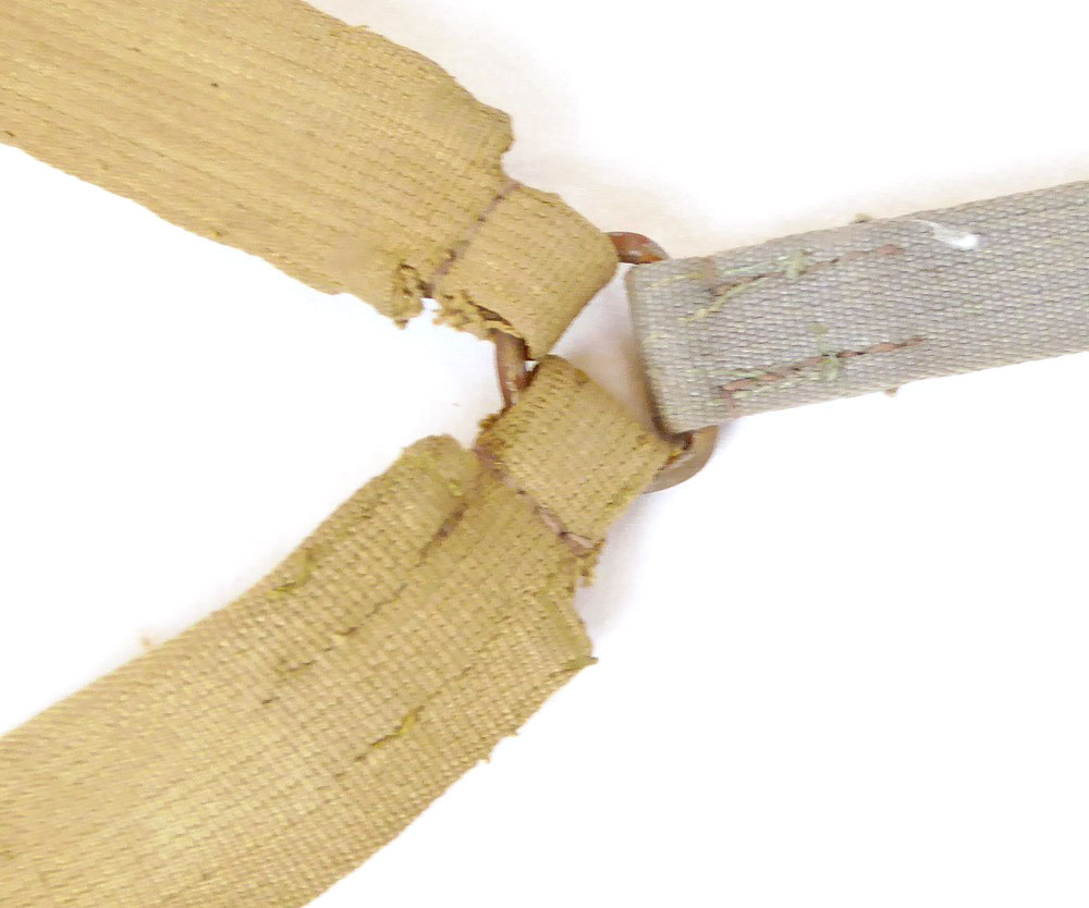 Später leichter Y-Riemen aus Endkriegsmaterialien gefertigt, zum Teil gebrauchtes material wieder recycelt, sehr schnell zusammen geschustertes Teil aus den letzten Kriegstagen.