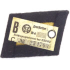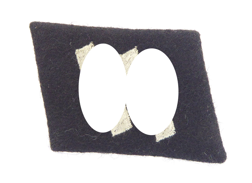 SS RZM rune collar tab, machine-embroidered version with RZM label on the back, very good, probably unworn condition, as shown.