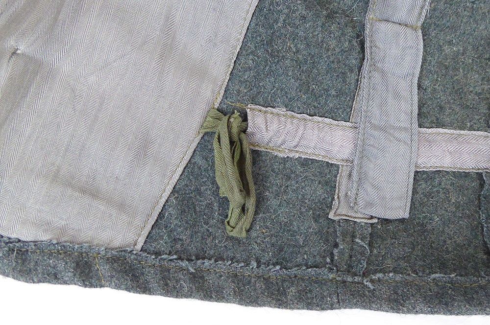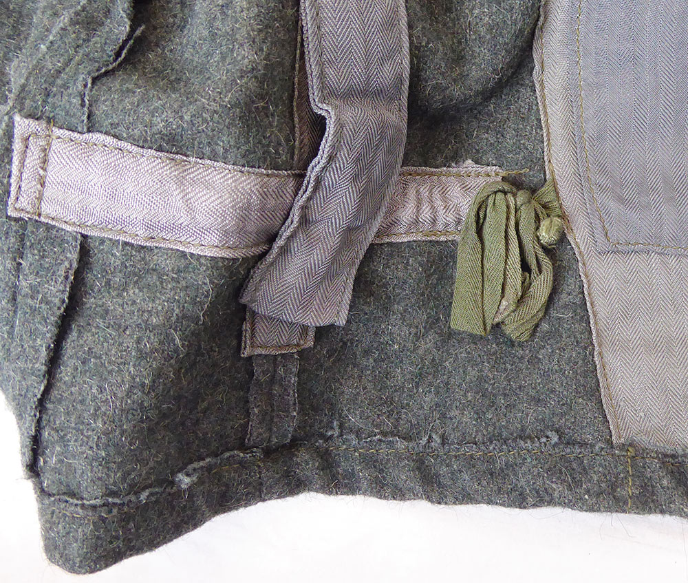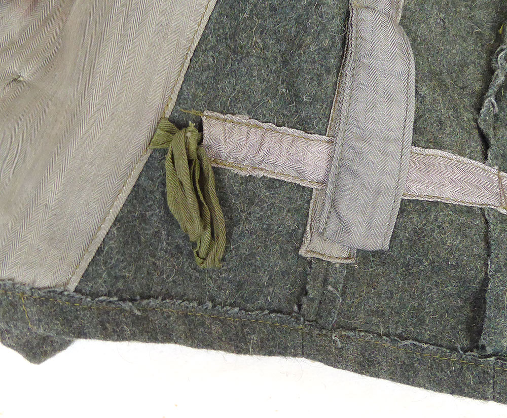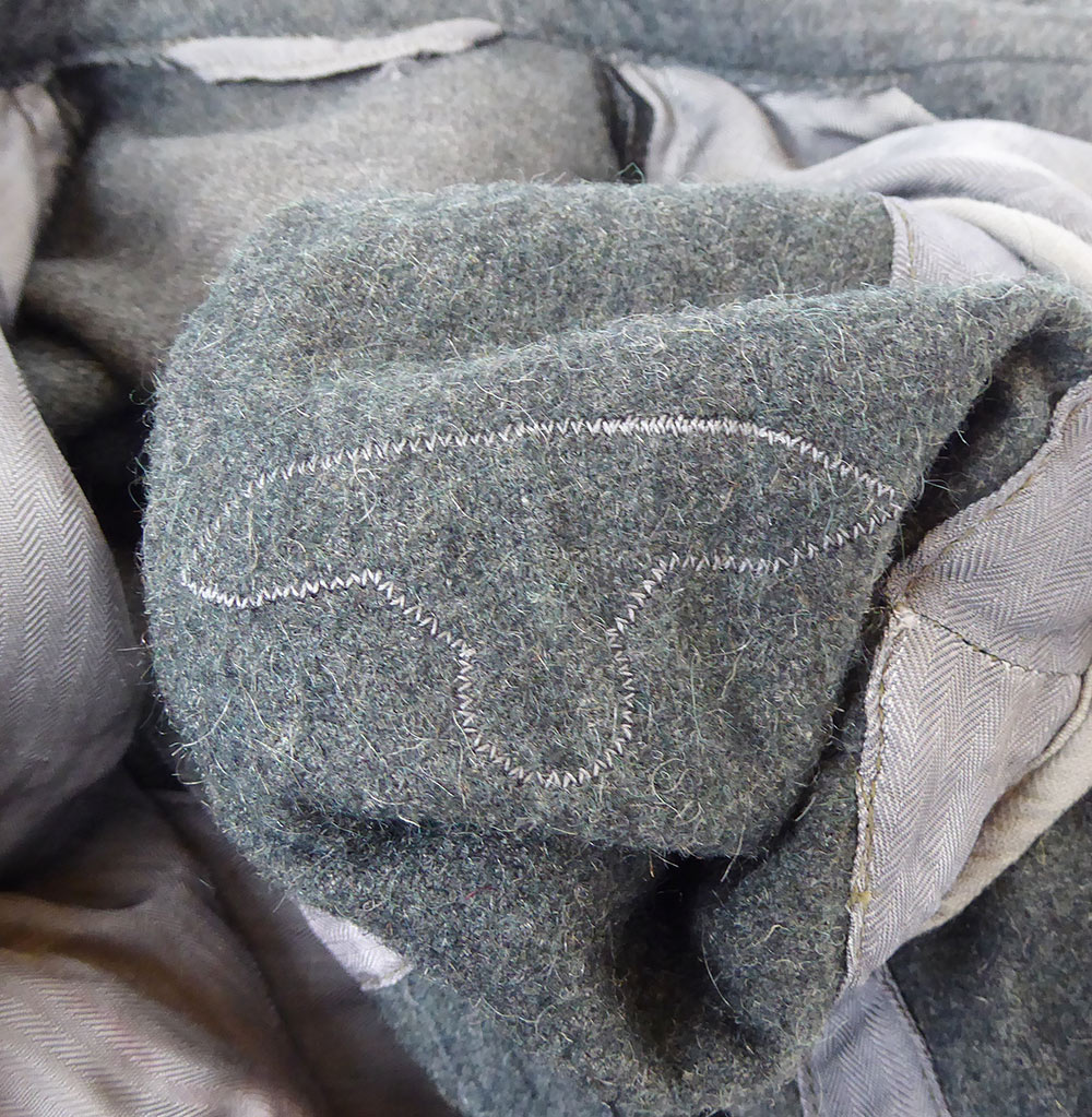 Fieldgrey Panzer Wrap for Sturmgeschütz of the Waffen-SS, i.e. the field-grey special clothing for Panzerkampfwagen. Beautiful, lightly worn condition, the sleeve eagle is still originally sewn, the collar tabs are unfortunately missing, there are no epaulettes either. This is a late production from mostly Italian captured materials, various different materials were also used in the lining, as is usual with the late Uniforms. Relatively small size, just about fits on the torso for photographing. Good condition, only lightly worn, hard to find in this quality.