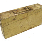Czech machine gun belt box, pre-war production that was used as booty by the Wehrmacht, then painted in tan color by the Wehrmacht, nice condition, as shown.