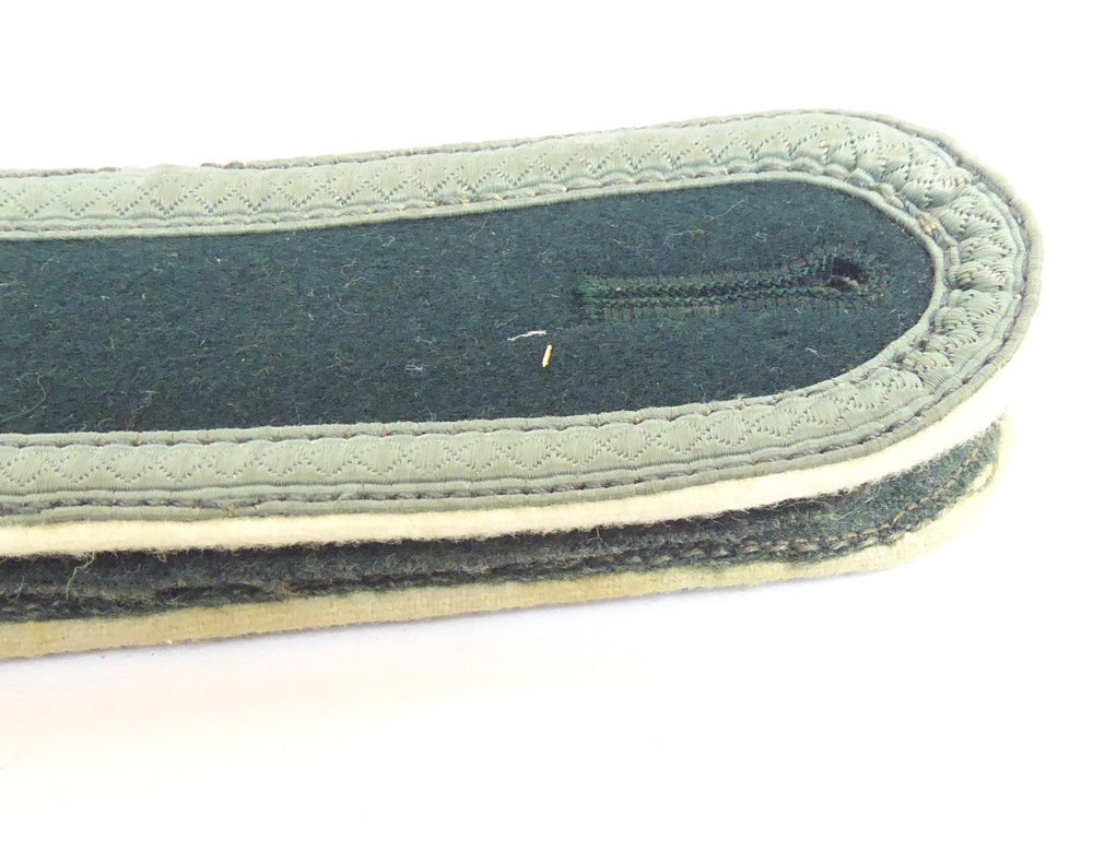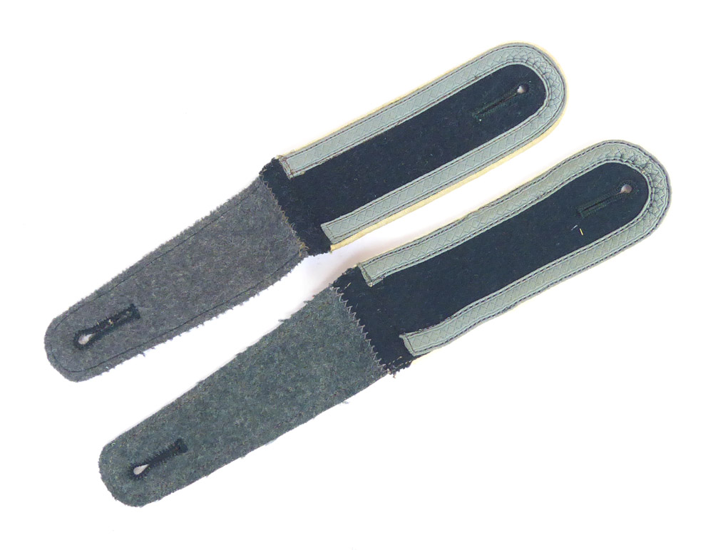 Two M36 shoulder boards for Wehrmacht coats, both with wool piping and later NCO litzen used from around 1943. Not a 100% matching pair, but they were certainly used together that way.