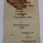 Certificate for the tank assault badge in bronze, for a motorcycle rifleman. Din A4 large, age-related condition, slightly more stained, but rare.