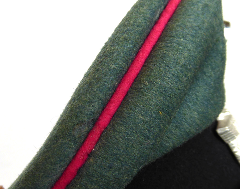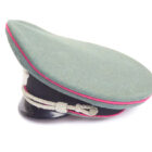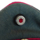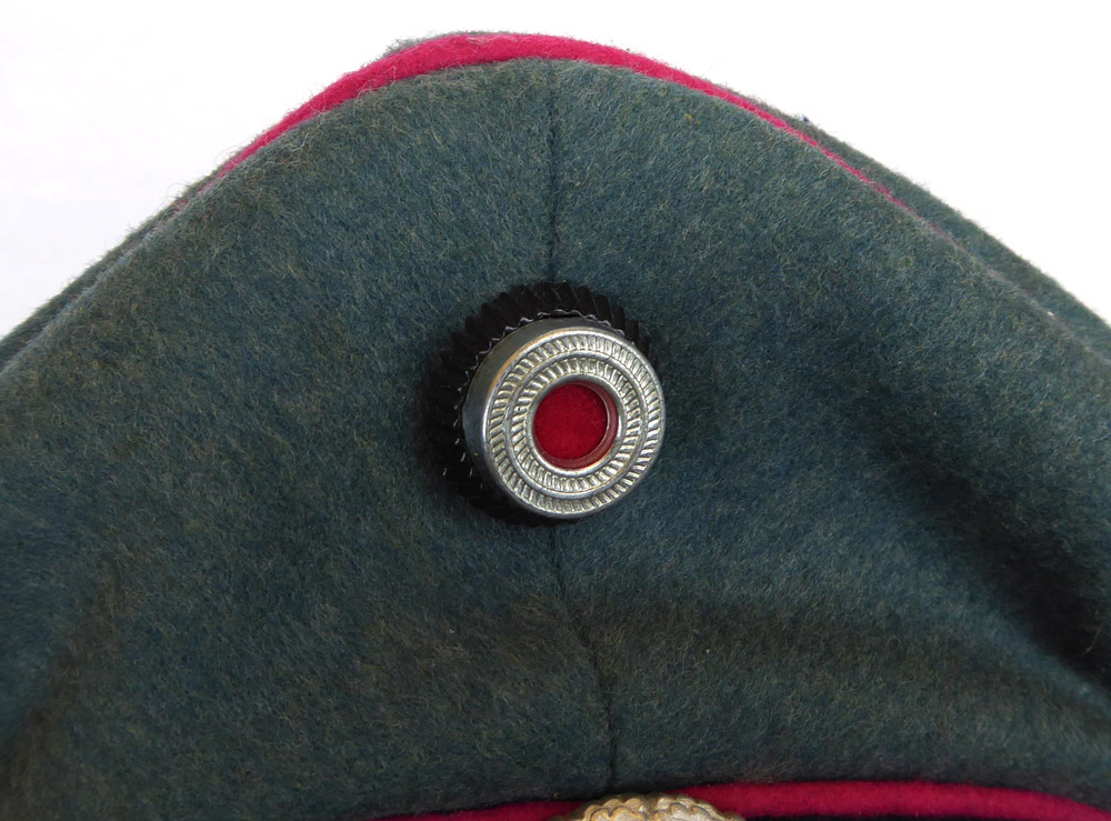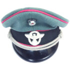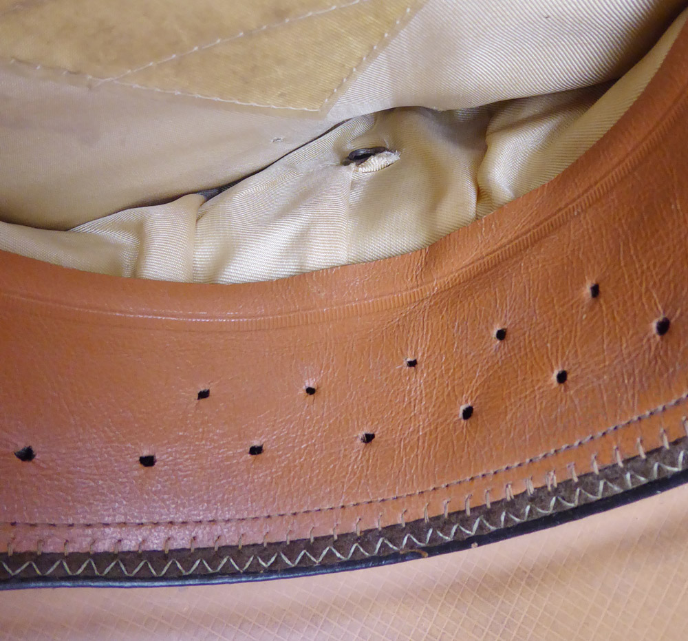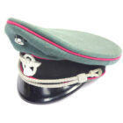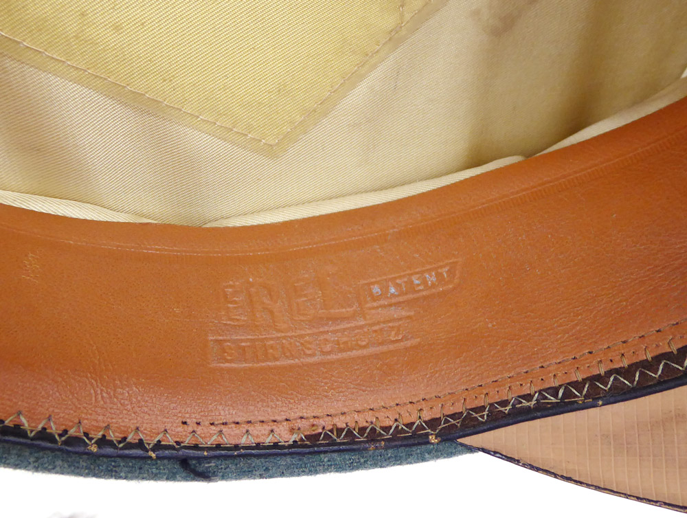 Schirmmütze für einen Offizier in der Kommunalpolizei (Gemeindepolizei) hier gefertigt von Erel im Modell privat mit Belüftungsloch unter der Kokarde, die Kokarde selbst aber ohne das Belüftungssieb. Insgesamt sehr guter nur leicht getragener zustand, hat nur minimale kaum auffallende Mottenlöcher. Eine extrem seltene Mütze, die wir hier zum ersten mal anbieten können und das sicherlich auch nicht so schnell wieder.