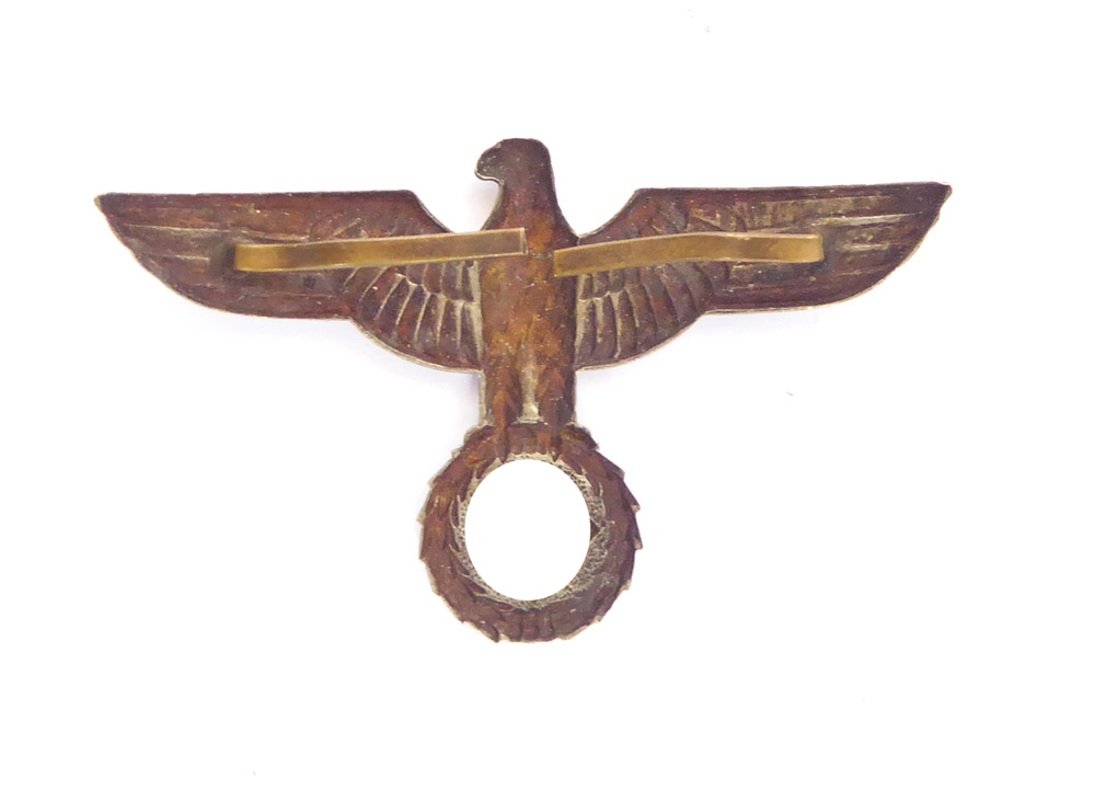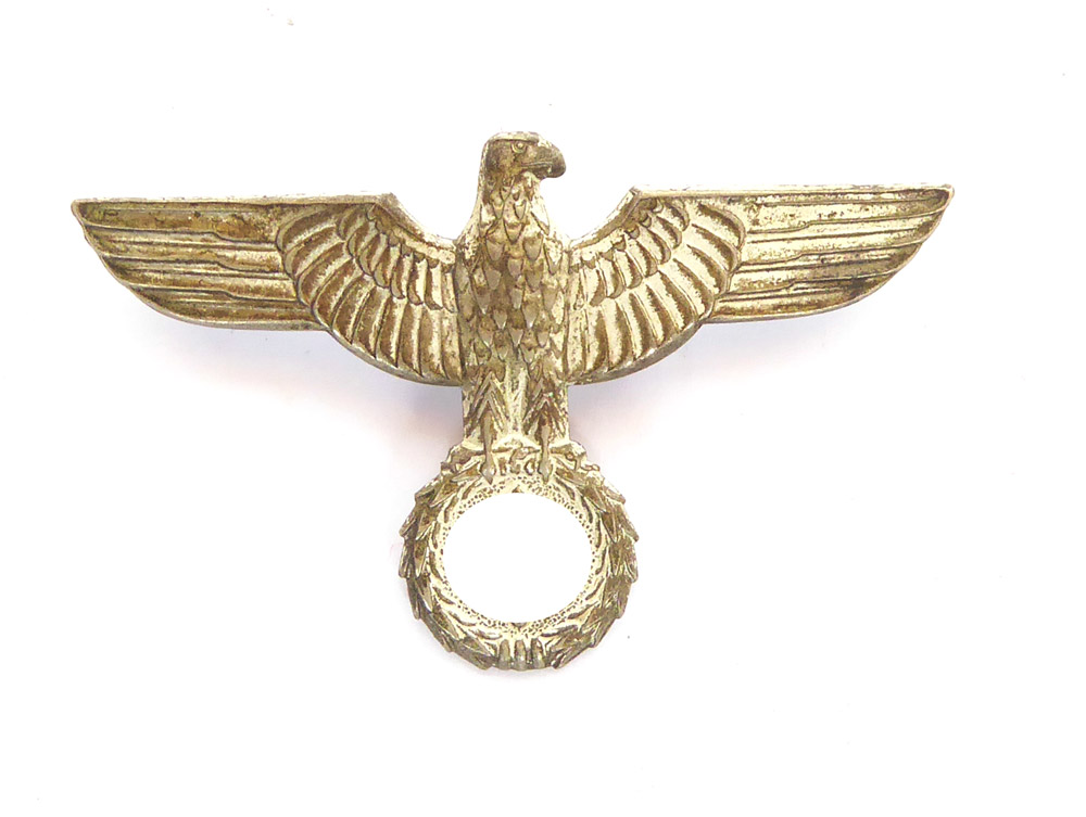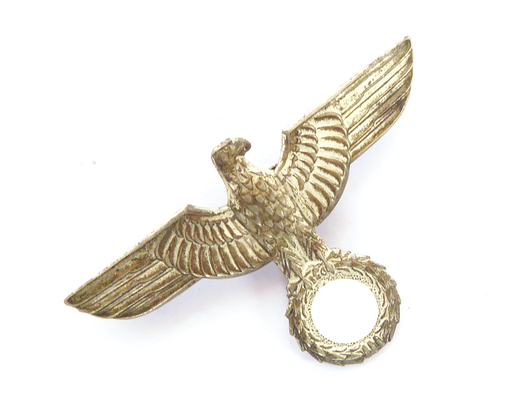 Visor cap eagle of the Wehrmacht, 1 model made of nickel silver in very nice, only slightly worn condition, as pictured.
