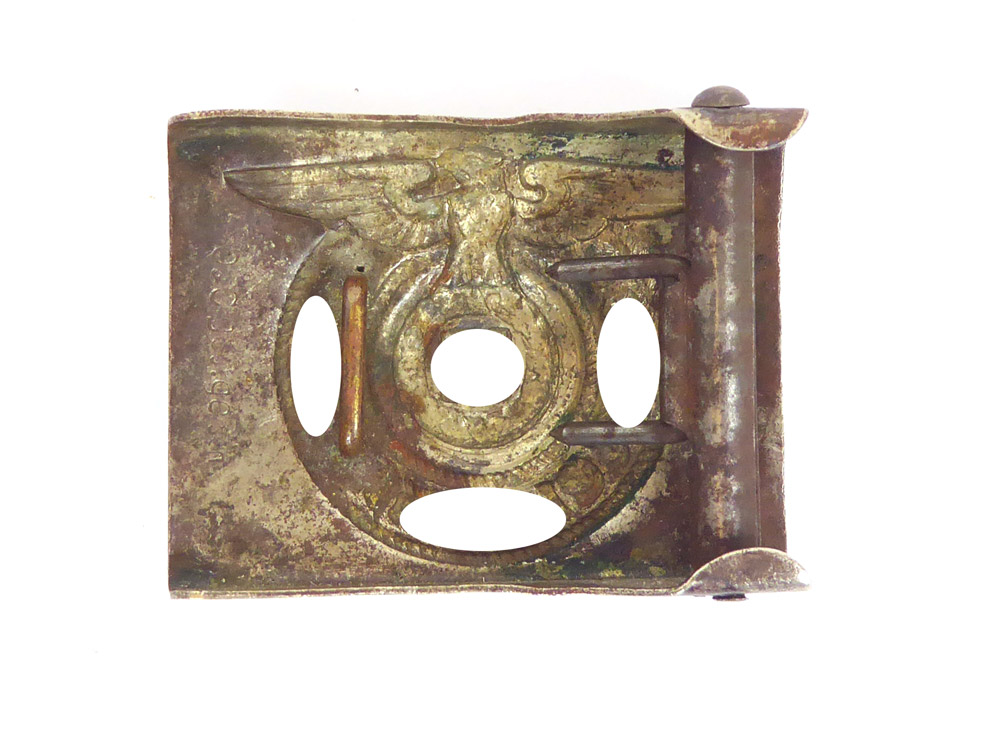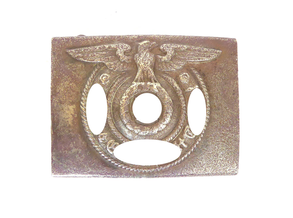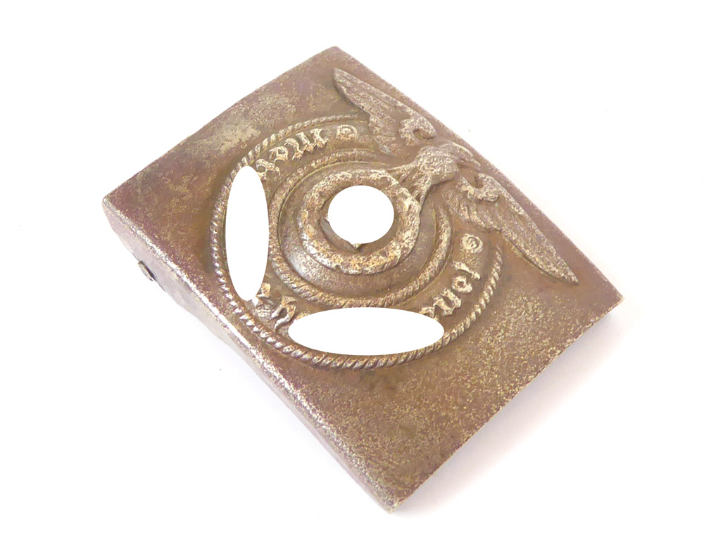 Waffen-SS belt buckle made of nickel silver by Overhoff, no longer in mint condition, but still very good, as pictured.