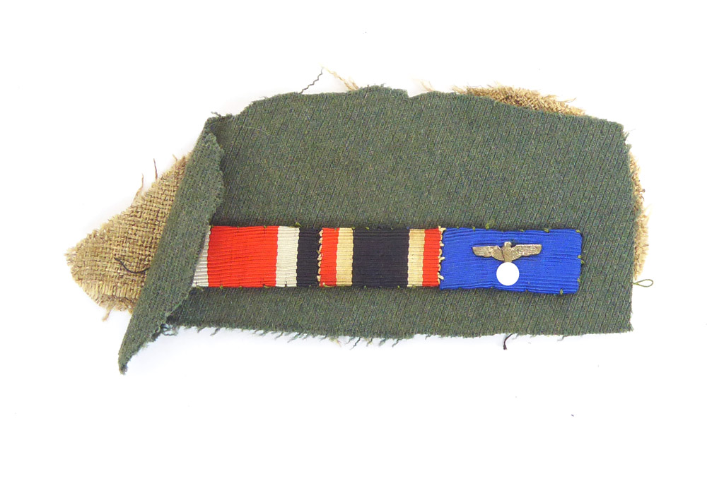 Wehrmacht ribbon bar, cut out with the piece of uniform, very nice condition as pictured.
