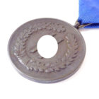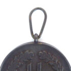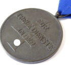 Dienstauszeichnung der SS für 4 Jahre, gefertigt aus getöntem Buntmetall, an Tropfenöse und sehr langem Band. Guter leicht getragener Zustand, so nur sehr selten zu finden.