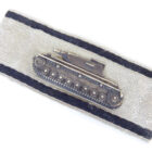 Special badge for fighting down armored vehicles by lone fighters, tank destruction badge, here as a very early non-magnetic production (back plate and armor pad both non-magnetic) made of nickel silver by the Moritz Hausch company. Very nice, unworn badge in good condition, only slight signs of storage, the armor pad is still very nicely tinted dark. Nickel silver pieces are very rare to find, mostly it is the somewhat later steel pieces that can be found, or now and then a piece of zinc.