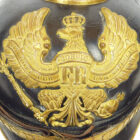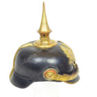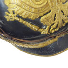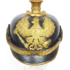 Prussian spike helmet for an officer, nice condition, as shown, the metal parts are beautifully fire-gilded.