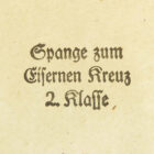 In der zugehörigen Verleihungstüte. Die Tüte in einen sehr guten, leicht gebrauchten Zustand. Auf der Vorderseite „Spange zum Eisernen Kreuz 2. Klasse“. Rückseitig der Stempel „Ludwig Bertsch Karlsruhe“.