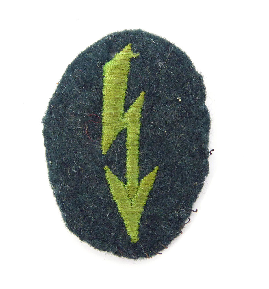 Ärmelabzeichen der Wehrmacht für einen Funker. Hier wiesengrün gestickt auf dunkelgrün, also Panzergrenadier.