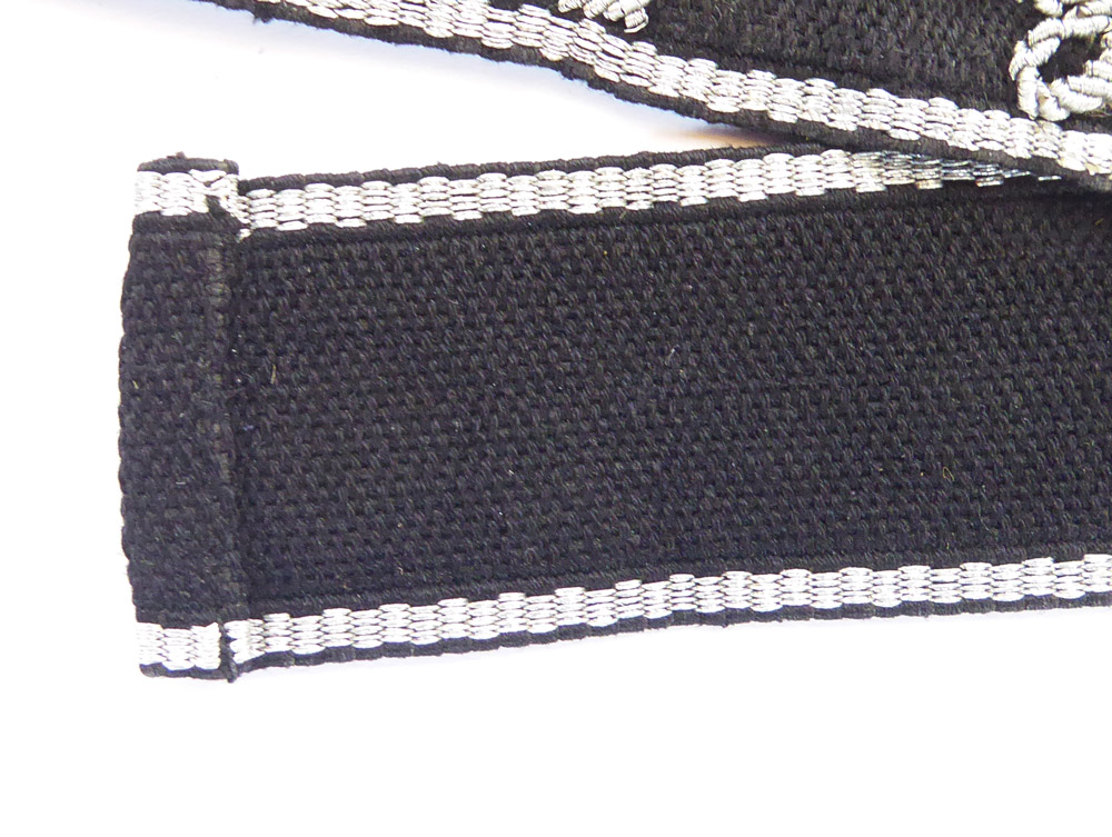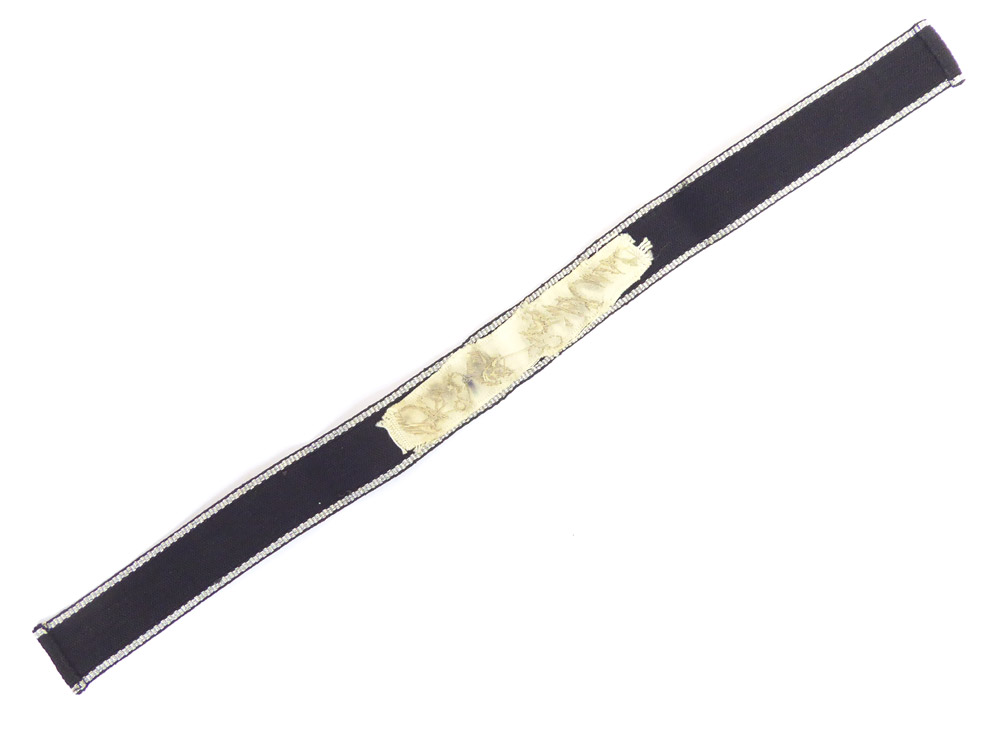 Ärmelband der LAH handgestickt für einen Offizier in voller Länge. Früher Band Rohling in früher Schreibweise, ungetragener Zustand in nahezu neuwertiger Erhaltung, leichte Lagerspuren vorhanden, das Band misst ca. 41,5cm, beide enden noch original umgenäht.
