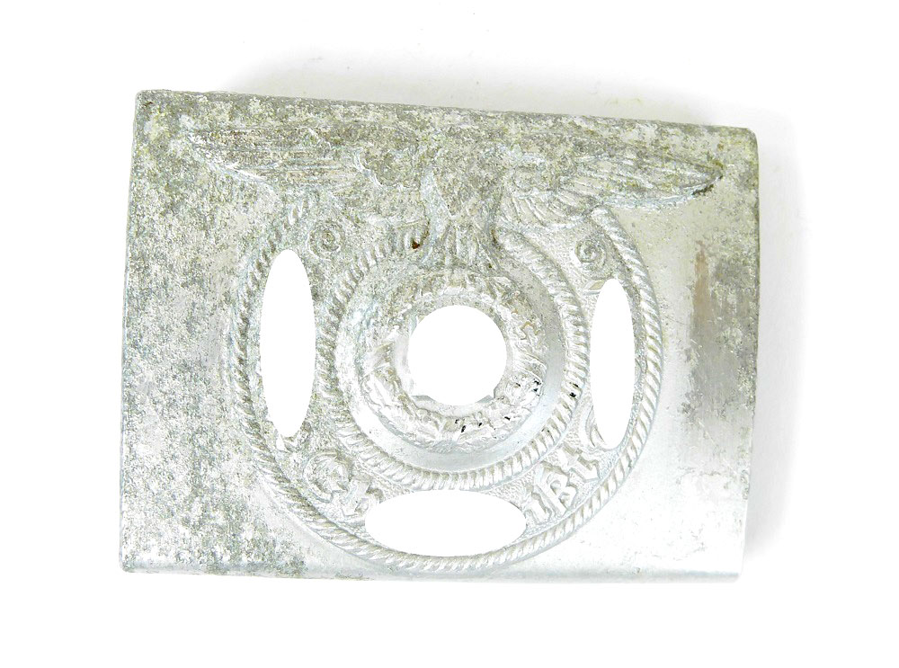 Aluminum Belt Buckles of the SS in worn condition. Atticfind with some oxidation but nothing wild. Markers Mark on the reverse with RZM 822/37 SS.