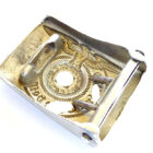 Stark getragenes Aluminiumkoppelschloss der Waffen-SS von dem Hersteller 822 (Richard Sieper & Söhne Lüdenscheid).
