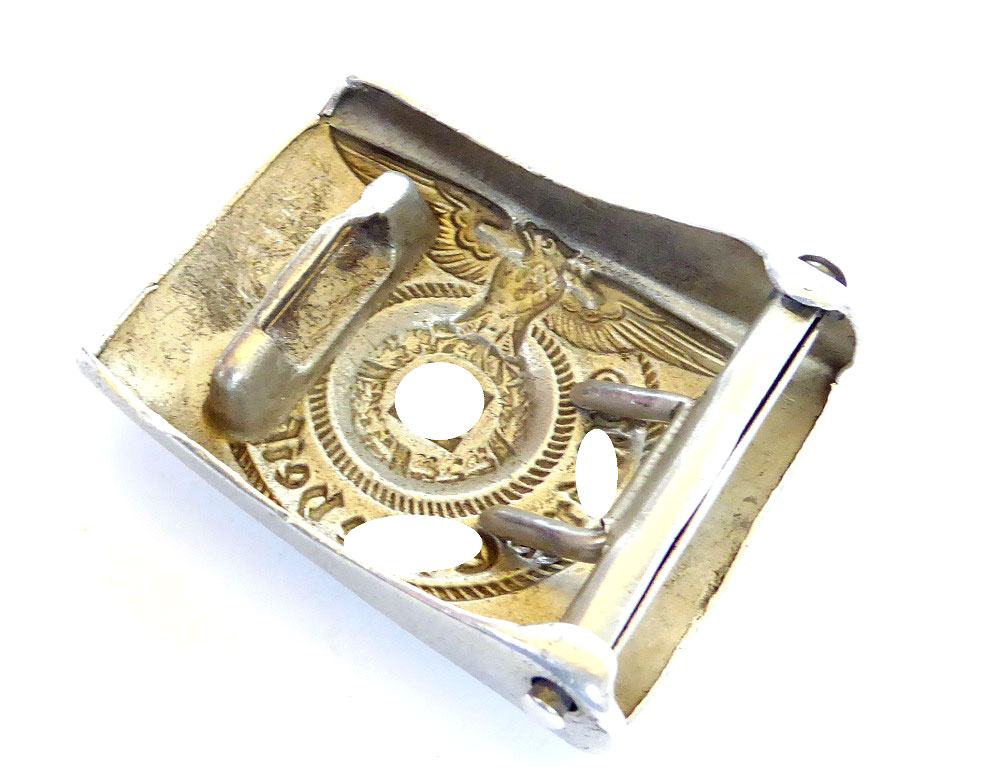 Heavily worn Waffen SS aluminum belt buckles from the manufacturer 822 (Richard Sieper & Söhne Lüdenscheid).