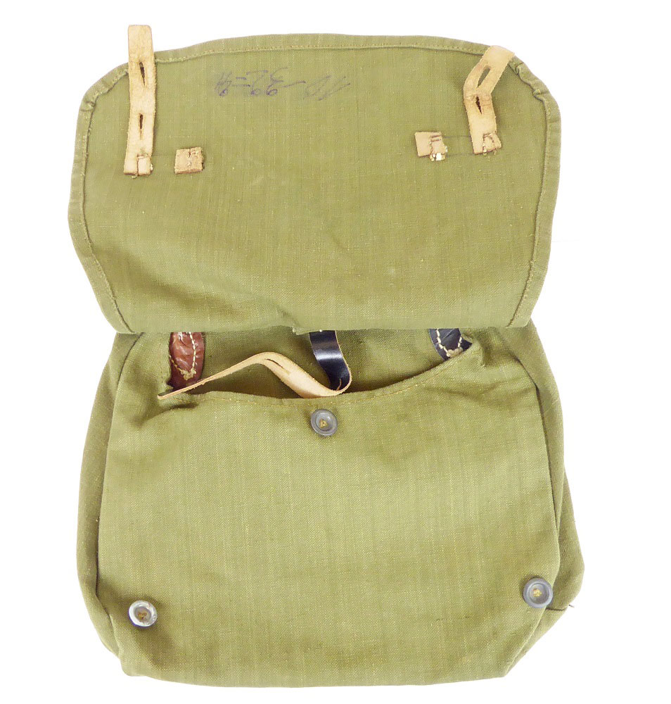 Bread bag of the Wehrmacht in almost mint condition, with this hook for hanging in the belt, I’ve never seen it, interesting design. It was written in the lid a combination of numbers, otherwise MINT piece.
