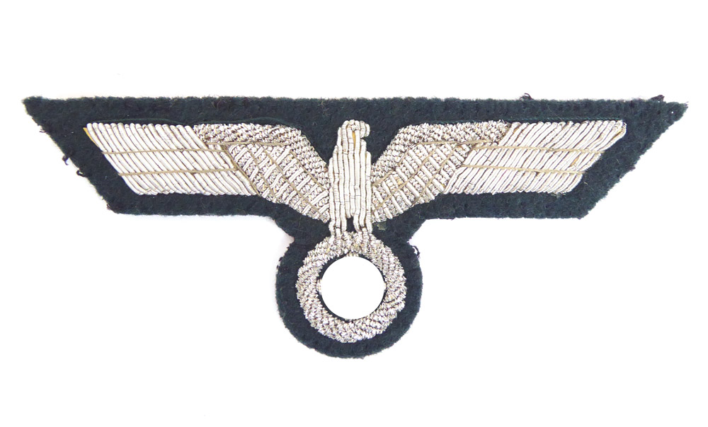 Brustadler für einen Offizier der Wehrmacht, handgestickte Ausführung in sehr gutem Zustand, wie abgebildet.