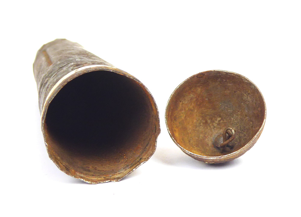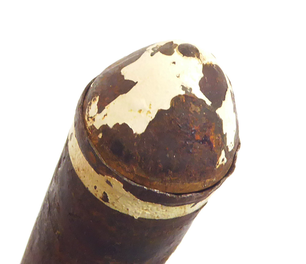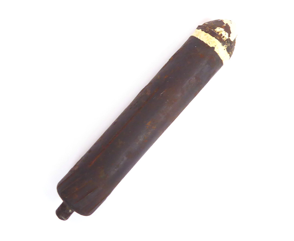 Deko Gewehr-Fallschirm leuchte Granate, hier in der selteneren späten Ausführung, eigentlich noch recht schöner Zustand, Reste der Beschriftung noch zu lesen. Komplett frei von jeglichen Gefahr Stoffen, innen komplett leer.