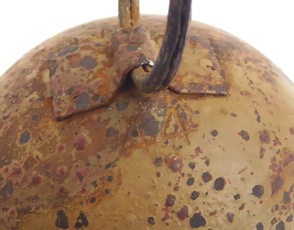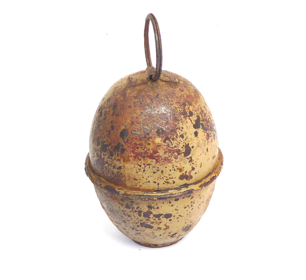 Deko M39 Eierhandgranate der Wehrmacht, hier als sehr seltene Fertigung die in Einheitsfarbe43 lackiert wurde, sehr schöner Zustand wie abgebildet, gestempelt mit ewv 44. Komplett frei von Jeglichen Gefahr Stoffen. Sandfarbene Eier sind extremst selten!