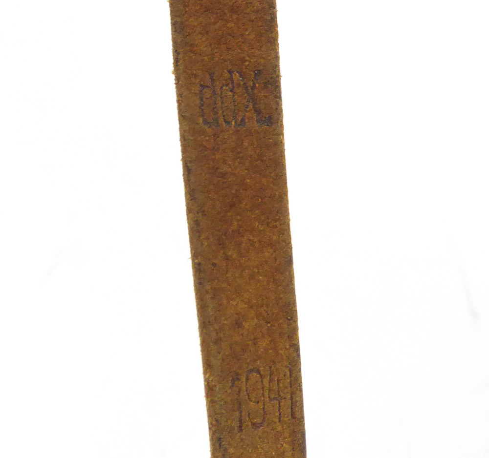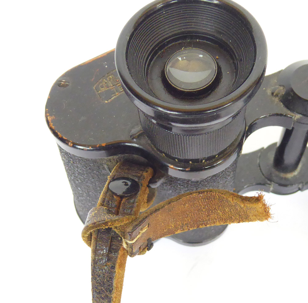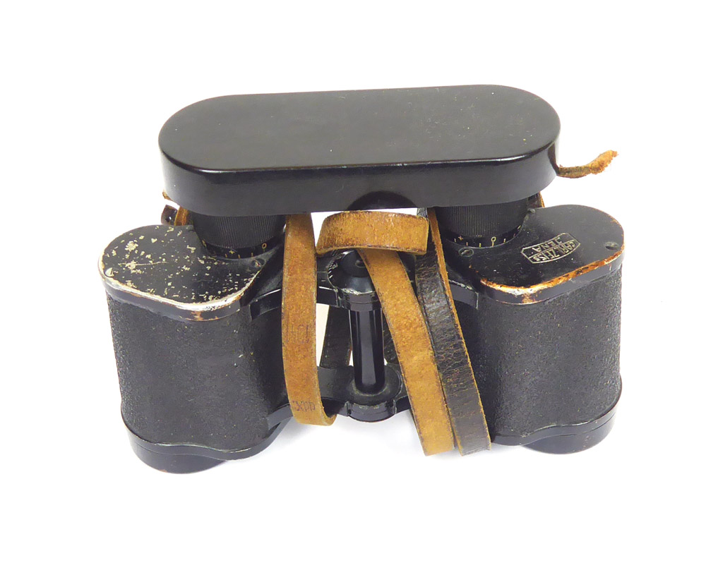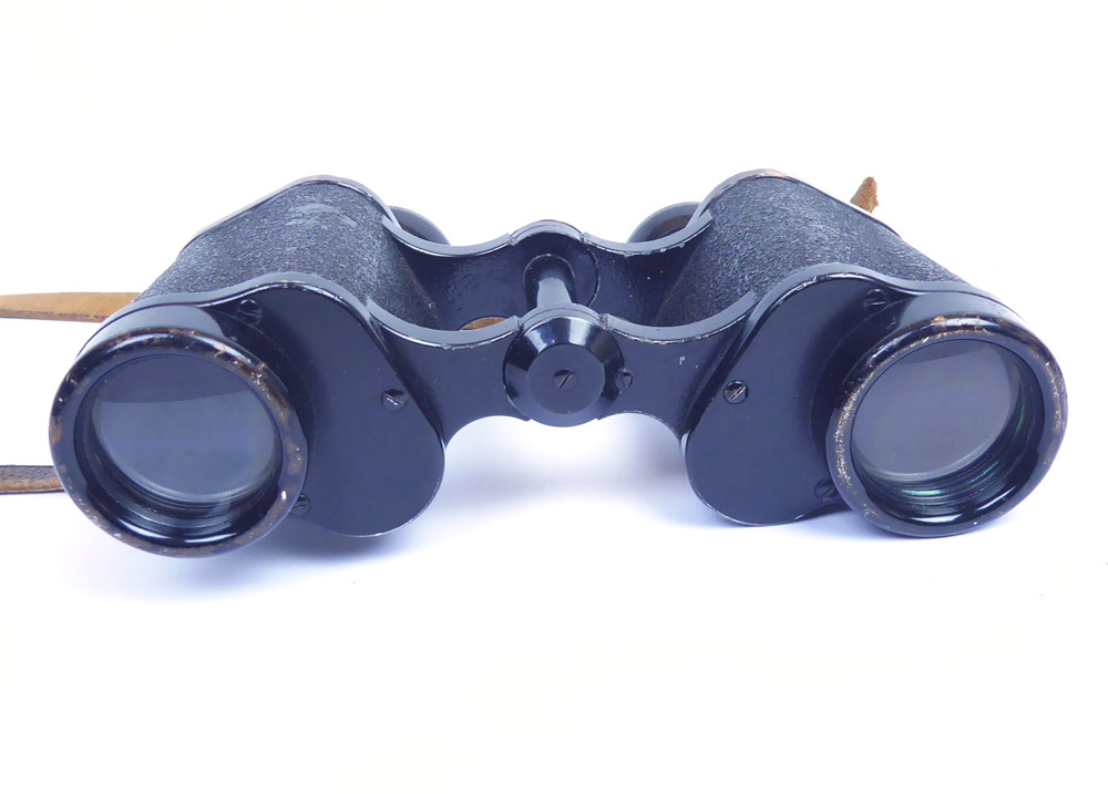 Dienstglas 6×30 mit Benutzerkappe und Trageriemen, die Durchsicht ist Klar und gut, Strichplatte vorhanden, gefertigt von Carl Zeiss Jena. Benutzerkappe mit cnx 1942 und WaA gestempelt, leider sind die beiden haltelaschen etwas beschädigt. Der Tragriemen sehr schön mit ddx 1941 gestempelt.