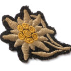 Edelweiß auf schwarzem Grund gestickt für die Waffen-SS zur Feldmütze. Diese Ausführung wurde unter anderem von den Gebirgsjäger Divisionen „Nord“ und „Prinz Eugen“ getragen.