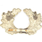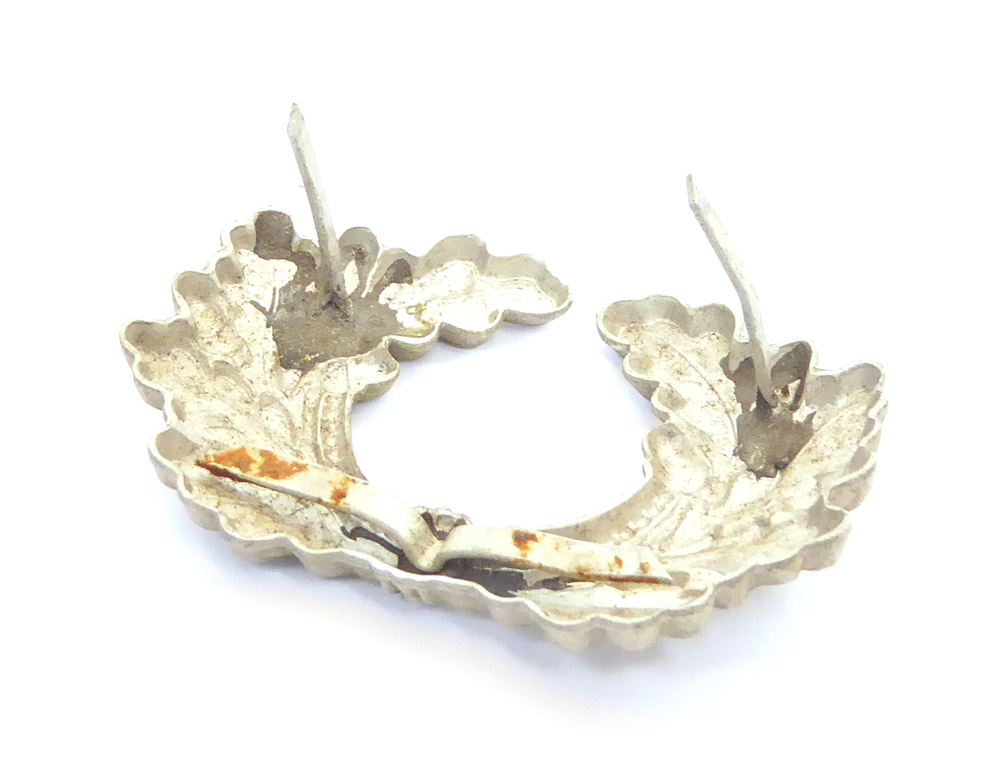 Eichenlaubkranz für eine Schirmmütze der Wehrmacht gefertigt aus Aluminium, alle Splinte intakt, schöner ungebrauchter Zustand mit nur ganz leichten Lagerspuren.