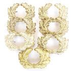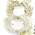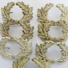 Oak leaf wreath for Wehrmacht visor caps, early production from frosty white matt silver-plated brass, the raised edges partly polished. Unused condition, with only minimal patina due to storage, both pins on the back are intact. Price is per piece.