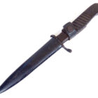 Trench Knife in very good condition, the blade has approx. 80% plist marks, a bit stained, but some of it is only old grease! The scabbard is very nice with original paint, the leather stretcher is in very good condition, only the leather has been newly attached to the scabbard.