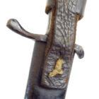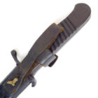 Grabendolch in sehr gutem Zustand, die klinge mit ca. 80% Plistspuren, etwas fleckig, diese zum Teil aber nur altes Fett! Die scheide sehr schön mit Originallack, das Trage Leder in sehr gutem Zustand, lediglich das Leder wurde neu an der Scheide befestigt.