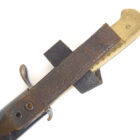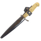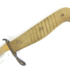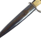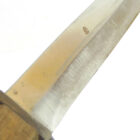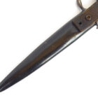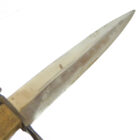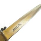 Trench Knife Hugo Köller Solingen in very nice, barely used condition as shown. The scabbard is almost 100% preserved with the original color, the leather is soft, the push button works, unfortunately one of the two rivets to hold the leather to the scabbard body is defective. The blade has plist marks and slight traces of sharpening. Very difficult to find in this quality.