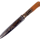 Infantry knife 42 of the Wehrmacht in good used condition, the blade with traces of usage and the etched logo of the company F.W. Höller Solingen, which is very rare in infantry knives 42.