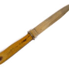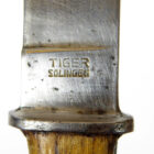 Sehr schönes Infanteriemesser 42 von Tiger Solingen. Scheide mit viel originallack, Holzgriffschalen in gutem Zustand, es wurden zwei verschiedene Holzarten verwendet. Auf der Fehlschärfe gestempelt mit „Tiger Solingen“, Infanteriemesser 42 mit Hersteller sind sehr selten zu finden. Klinge wurde mal gereinigt.