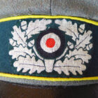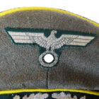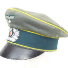 Knautschmütze / Feldmütze Alter Art für Offiziere der Wehrmacht, hier mit der Waffenfarbe Zitronengelb für Nachrichten, Adler und Kokarde wurden meiner Meinung nach mal neu vernäht, die Mütze auch generell leicht gereinigt, wo die Raute im Inneren sitzt wurde eine Art Kleber angebracht, wieso weiß ich leider nicht. Kein absoluter Mint zustand, dennoch eine schöne Knautschmütze mit Lederschirm, dafür preislich günstig angesetzt.