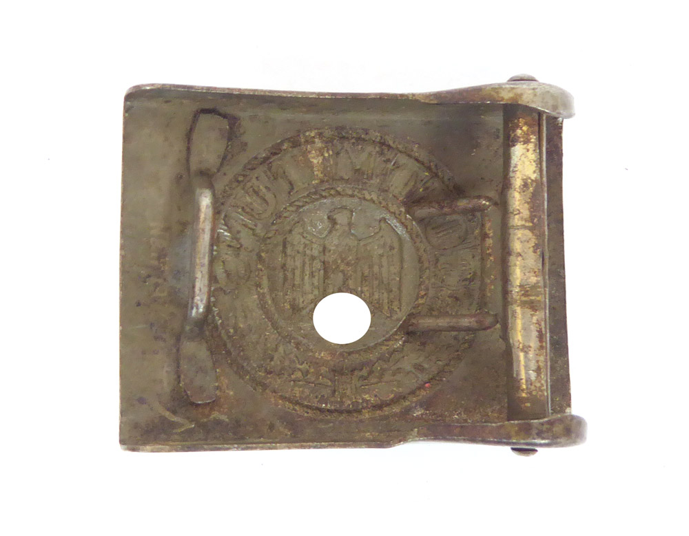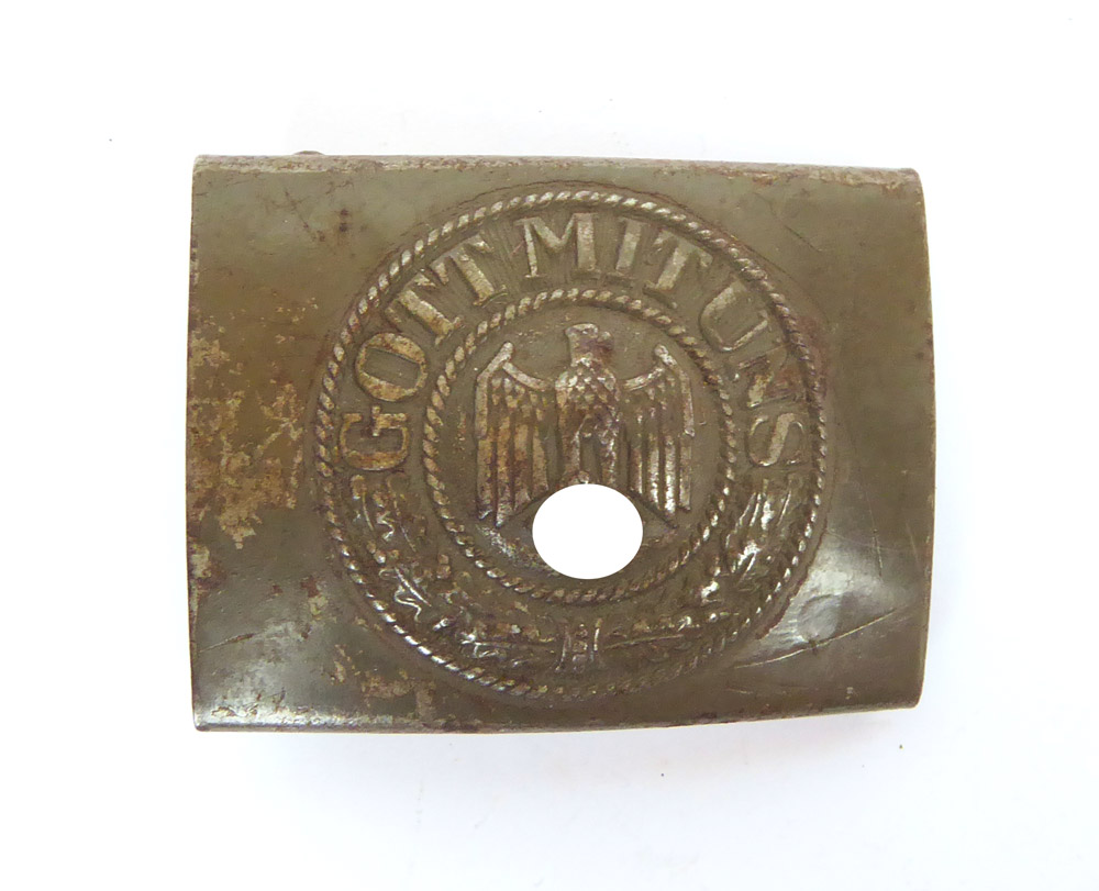 Koppelschloss der Wehrmacht gefertigt aus feldgrau lackiertem stahl von Noelle & Hüeck, schöner nur leicht getragener Zustand, wie abgebildet.